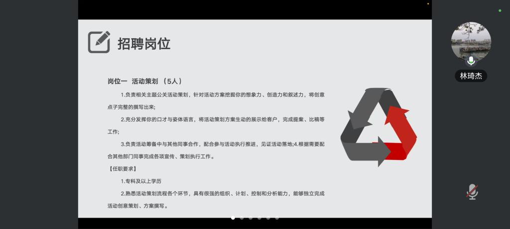 此次招聘宣讲会,乐琦文化传媒为艺术学院的毕业生提供了三个方向的岗位。其中,全职的活动策划岗位招聘5人,招生组岗位招聘若干人,声乐、器乐老师岗位各招聘3人。