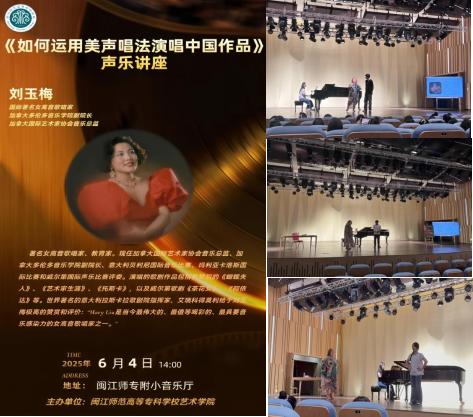2025年6月4日14:00,国际著名女高音歌唱家、加拿大多伦多音乐学院副院长刘玉梅教授应邀来我院开展了一场题为《如何运用美声唱法演唱中国作品》的声乐讲座。艺术学院方晶副院长、音乐教育专业负责人徐丽红副教授,以及声乐与理论教研室教师们出席了此次讲座。