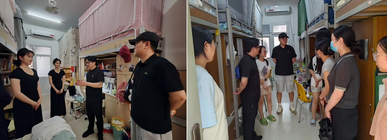 为深入了解学生期末周的学习生活情况,加强师生之间的沟通与交流,6月20日,艺术学院徐青院长、陈洪翔副院长带领全体辅导员,深入学生宿舍开展期末宿舍走访活动。