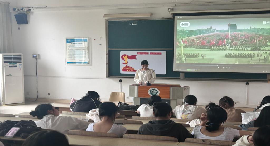 活动现场,一面精心设计的留言墙格外吸睛——天安门城楼图案庄重典雅,“吾心向党,寄语祖国”八个大字醒目耀眼。活动伊始,部门副部长发表热忱致辞,细数76年来新中国在中国共产党的领导下创下的举世成就,并号召同学们写下对祖国的赤诚之心与祝福。
